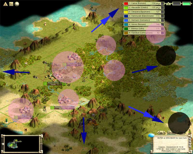 I sent out more warriors and again, sent them all to explore in the wrong directions. This is what held back my contact with other civs, and which eventually brought me to a mean encouter with the romans.