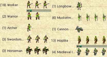 And here's the Greek Military - 34 units, including only six musketmen (two of them regulars I finished with rushes during the construction phase), to defend against 39 cavalry plus whatever reinforcements Rome might send in.