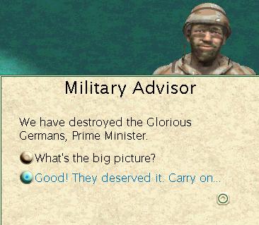 I used a short peace break to upgrade my Tanks to MA's and to replace my losses. Currently invading the French and Russian corelands. Aesons Recycling Blitz works very good. France has infantry and is a bit stronger than Russia, but both they are no match for my mighty army. Germany declared war, because they had a MPP with Russia. At the other side of the globe 6 Battleships and 4 Carriers bomb the sh!t out of Bismarck. I have Peace only with England. They are my fur supplier... erm, till I take Paris (has furs). After this, I'll pick on England as well. England is the strongest and most advanced AI civ. Strange, this rarely happens.