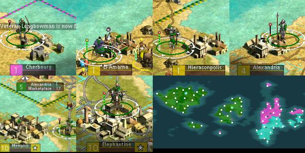 Unfortunately for the spirit of the game, someone had to stay home and guard the fort, and it made more sense to use archers rather than horsemen for that. So my archers stayed out of most of the war, although they did recapture one city that I got a bit careless with.