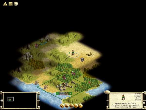 My first build was a Barracks, 7 turns. Then I built several veteran Warriors, planning on a very early strike against whoever turned out to be my closest neighbors. One of my Warriors got barbarians out of the first and only hut I found, and ended up elite.