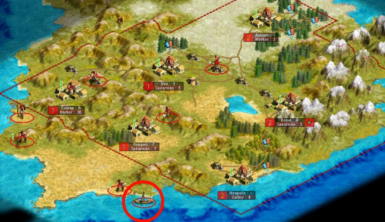 550 BC - Our Empire now consists of 6 cities and our two bands of settlers will soon make that 8. Horses have been sighted in the north-west and we intend to domesticate them for our own use: neither man nor beast will stop us from achieving domination over this world. Our first galley has set forth from Neapolis in search of far and distant lands and it has already crushed a Barbarian vessel. Soon other cultures will feel our wrath, our terrain is harsh and unproductive, but it breeds tough men - a fact that others will soon have revealed to them at their cost.If I'm posting here then Counterglow must be down.