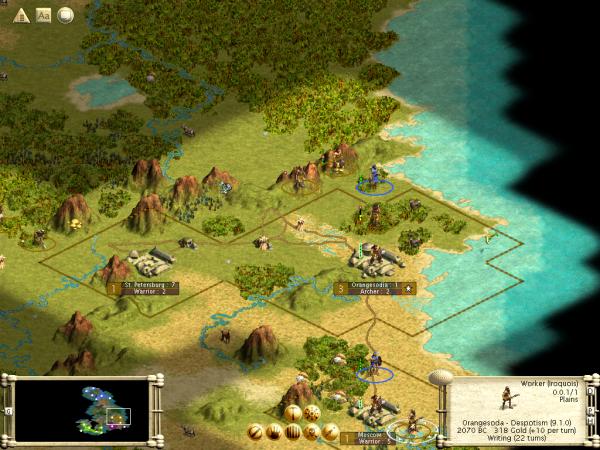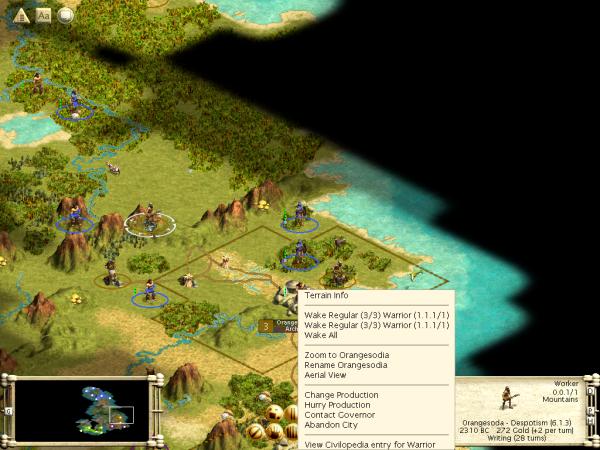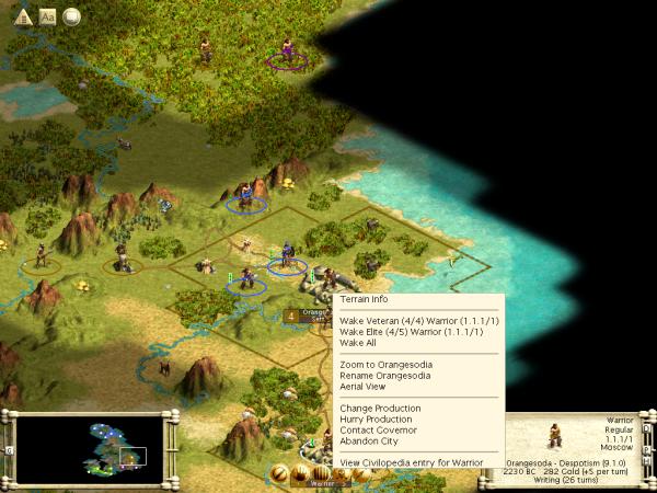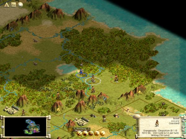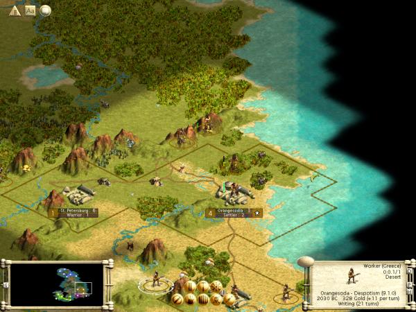 I chose the Russians, forgot about setting the difficulty, so it turned out Deity. Using the 1.29f .bic because I don't yet have PtW. If you don't normally play Deity, you can always edit the Civilization3.ini file to include "Difficulty=5" to impress/punish your friends/family who decide to start up a game of Civ3 in the rare moments you've left the computer... or just to ruin your next game you start. I always forget to set the difficulty. I was planning on trying this game on Emperor.