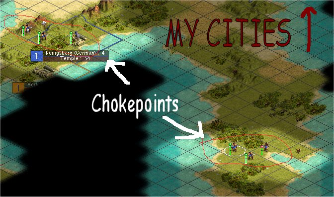 I've got the SW chokepoint and cities placed vertically from the capitol to the southern sea.