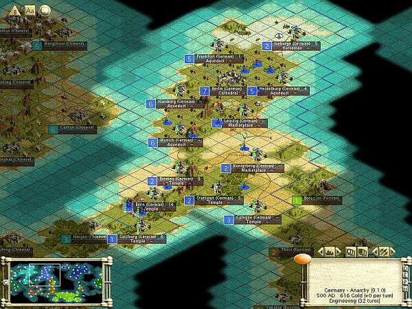 I'm fairly far along in my game right now, (1500's AD), and things are stable, though not great. China controls most of the world, having taken out the English, Romans, and Aztecs. Persia is also very large, and is currently removing the Russians from the surface of the world. I have been attacked by the Chinese on two separate occasions, but managed to hold them back thanks to a wall of forts and musketeers along my Western chokepoint. A few culture-flippped cities from the Russians also expanded my Eastern holdings, though I am still the smallest land in the world by far. I have fallen far behind in techs, about 4 or 5 behind China and Persia. My only plan now is to try and hang on until the industrial ages, and then wait for the inevitable clash between Persia and China to start my Communistic war machine. I'll post some pictures shortly...