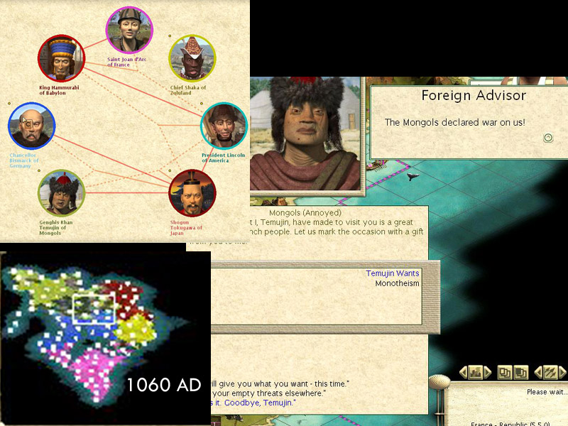) They got the Great Library 1 turn before me. I hate them. Hate them, hate them, hate them. I plan on nuking them someday. "You remember 2000 years ago when you got the GL? Well, here's your payback." Yeah, that'd be great. Oh well, more later...