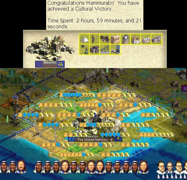 I'm actually quite astonished that Culture victories are so "easy" with only one city. All you basically need to do is keep the AI off your back for an extended period of time, and build a bunch of Wonders and improvements. It only gets "interesting" when one of the AIs starts pulling ahead, in which case you have to maneuver to ensure it does not win by Spaceship or Domination (as happened in CerburusIV's game, doh!).