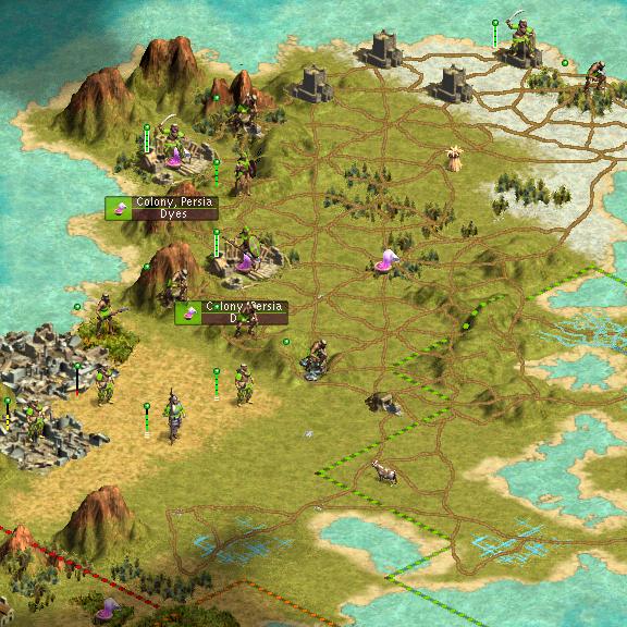 What I did with Iron is also possible with Luxuries. With an Ivory monopoly in this game and all other Luxuries pretty evenly distributed, you can pick and choose which civs are going to have to pay (Entertainer-wise) to keep their citizens content.