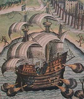 The merchantmen usually carried a normal complement of sails, with topsails, in the larger ships even topgallants, along with a variety of guns, although their lack of use and the lack of gunnery practice often rendered them more to of nuisance value.