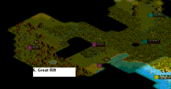 The unofficial names are Dragon Teeth, Home Divide, Uber's Island, Great Plains. I like Dragon Teeth, which is a very good idea. However, I think we should wait before naming the land in front of Apolyton, until we actually know what it looks like. BTW, I dislike the name "Uber Island" even if it happens to be an island (so far, we adopted "official" names when nobody voiced a significant opposition. I think landmarks should not be named after people, we already have cities for this).