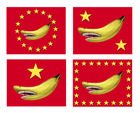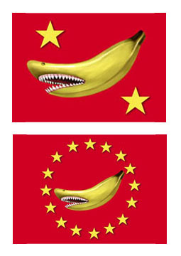 The war flag with the circle of stars is a declaration of intent which will terrify our ennemies : they are 16 stars, symbolyzing the 16 civs worshipping the Great Banana !
