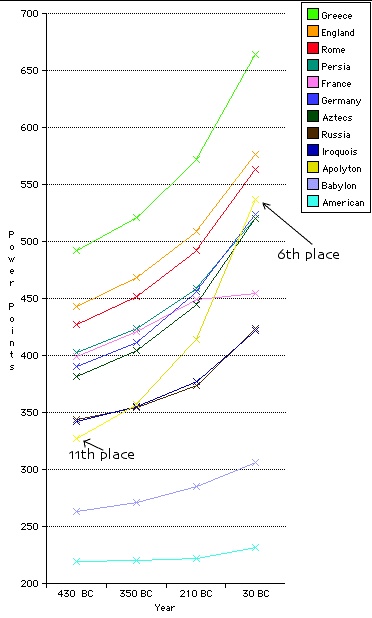 MAJOR POWERS: (any nation with 15% more points than the mean; "lost civs" not listed):
