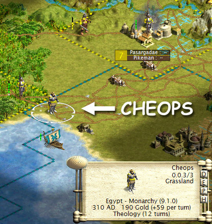 Then we started 310AD, and OPD was all sleepy and wanted to end the turnchat so he doesn't make any mistakes. We did a pretty standard move, attack a persian archer that showed up two tiles west of Willsbury, and then there was silence.