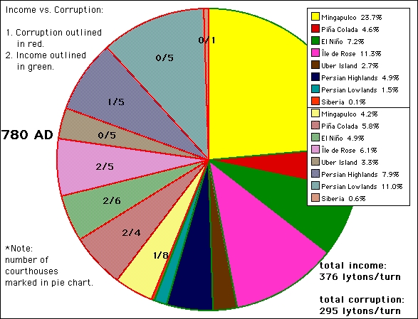 This report brings us one hell of a monstrous chart. It details the income versus corruption in terms of the provinces. The results show, more than anything, that the Persian Lowlands have an incredible base for income but are unbelievable corrupt: corruption outnumbers income almost SEVEN TO ONE!!! Thus I am instituting a second round of requests for courthouses in the following cities: