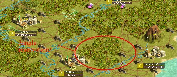 I know we are still a long way to go, but i figured we must keep some of our ancient jungle in place, at least for the tourisits to see from what early tough condition we have grown to such a glorious empire, and for the ecological value of. I thought the following site would be the best- it's close to our capital, and to the future site of the palace, and it's some of the most ancient jungle sites we have left, since our early days of expansion (i wasn't here, but i assumed this was so, please correct me if i'm wrong).