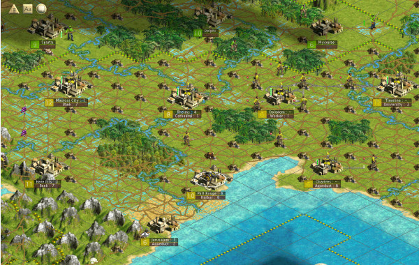The next turn, one Impi attacked Solace and lost, while the other moved and was killed by one of the two Cavalry that came from Boomtown. The Zulu still have two galleys that have an unknown complement of forces. We have 3 Cavalry and several Musketmen on the Island. We have sufficient forces their to meet any further invasions. The Uber Island Ferry is headed back to Apolyton to get more troops, if they are deemed necessary.
