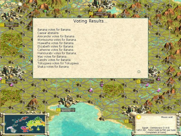 Then, join in the fun, sign up, and help shape what game is played in Civ3 Democracy Game Number Deux.
