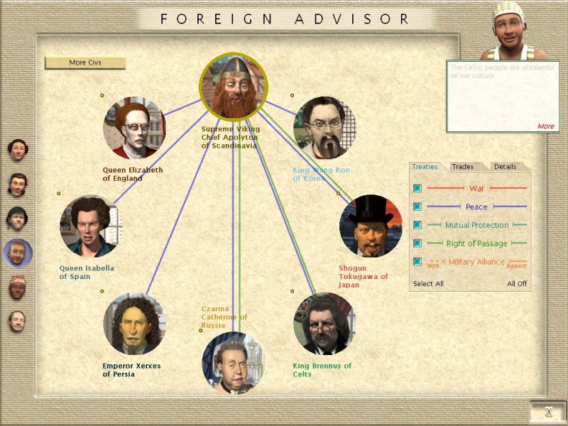 - We are at peace with most of the world. This includes our three immediate neighbours, the diplomatically influent Korea, the powerful Russia, and three trade partners: England, Japan and Celts.