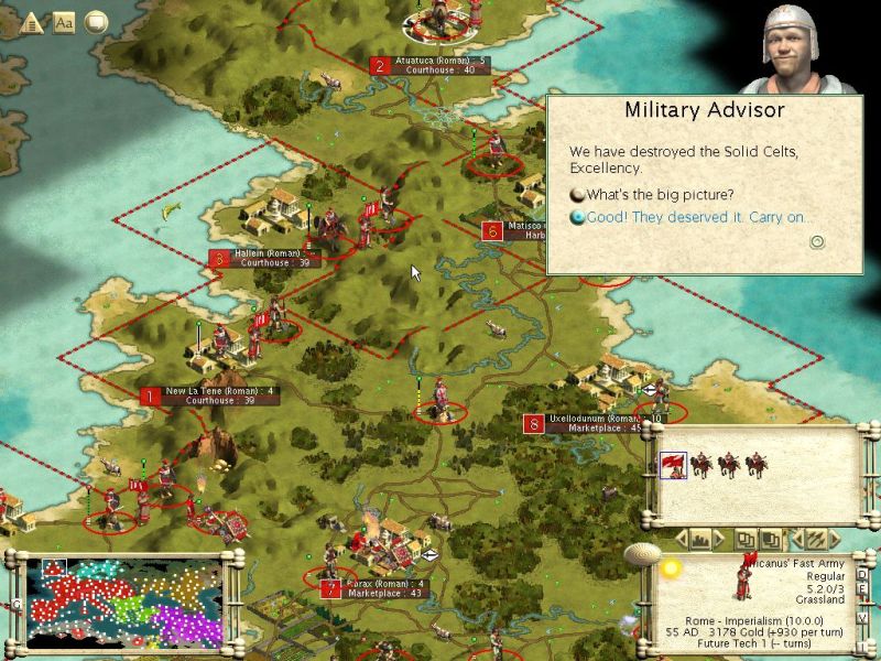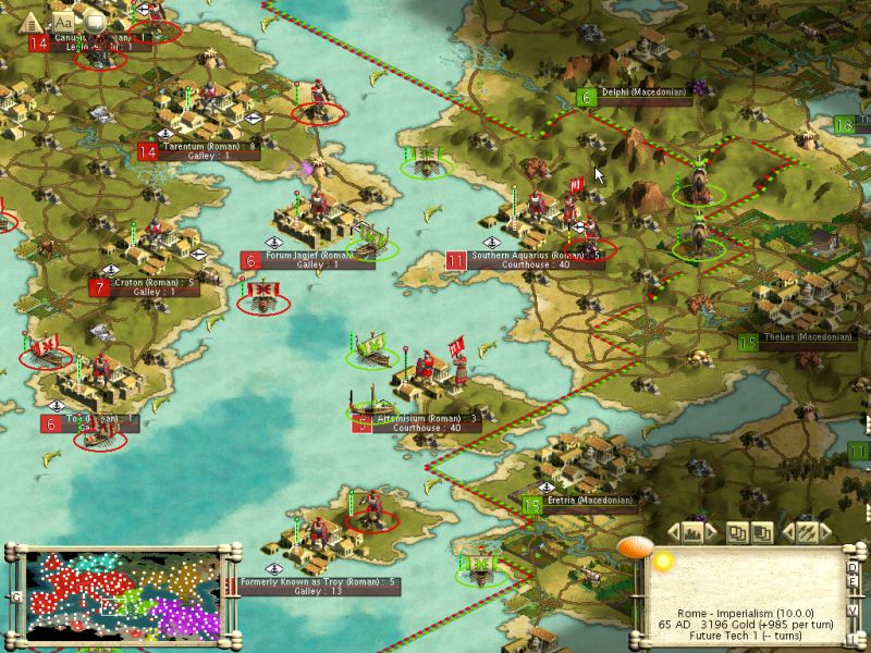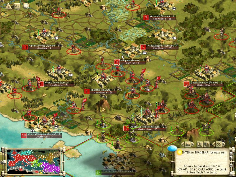 ). Troops moved into position to attack Pharsalos and Phocaea next turn. Meanwhile, we continue to soften Celtic defences, and move all available troops within attacking range of the Carthaginian city of Oea, as recommended by the Senate (and dutifully accepted by this Emperor