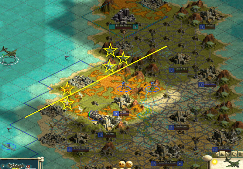 3 more nukes this turn, last turn we built 3 but did not use them becaue the only target we could hit was Dissidentville and that's the target we DON'T want to hit yet.
