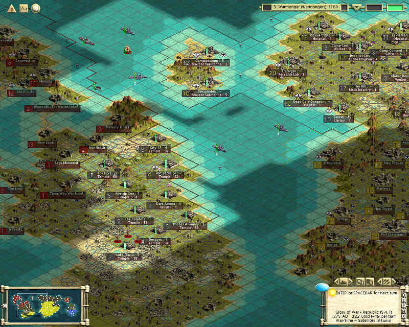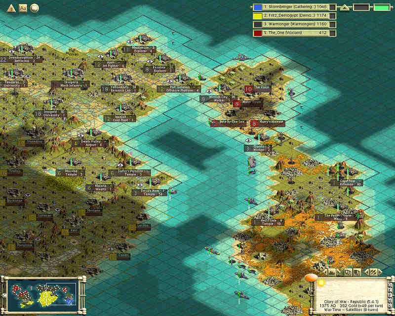 Still, we'll continue pushing southward until their last city is either captured or in ruins. I also forgot to mention in last turn's report that we built 2 new cities in Legoland. Other than that, not much new, we re-mobilized at the end of the turn and have a bunch of goodies which will be built this turn.