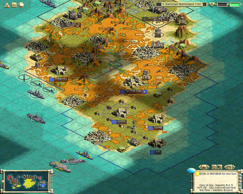 Our main stack is just 3 tiles from Eye of the Storm and our troops threaten both Tempest and Hurricane, GS's major cultural cities.