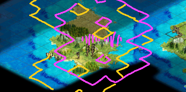Without irrigation these cities will never be that big, but we MUST have those Whale resources to support the construction of Workers on this island and the purple sites are the only two tiles that allow the use of the Whale resources.