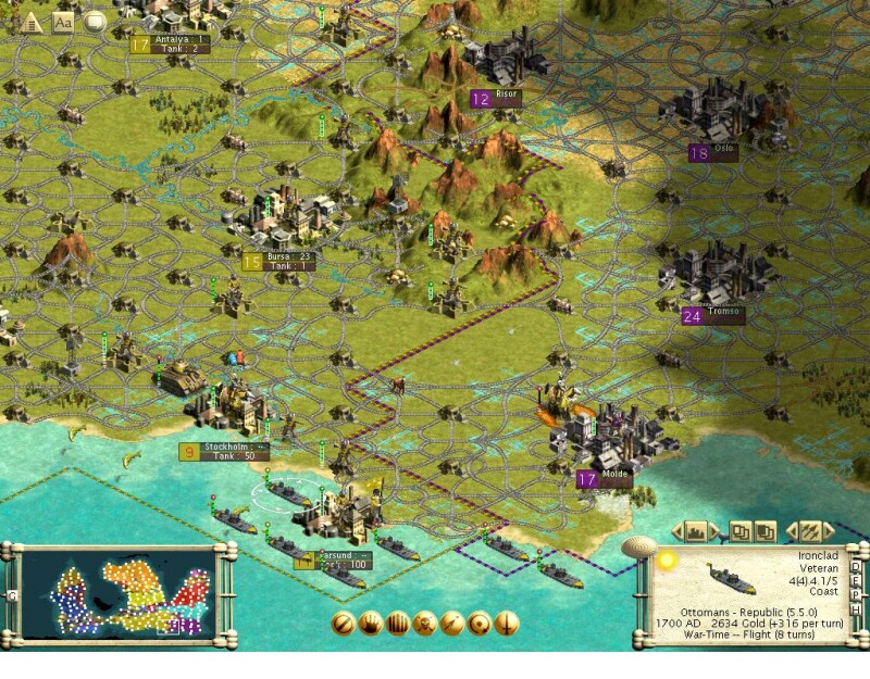 I cannot belive how important this city has been. Munich..it lets my navy finnaly pass into that ocean seperateing the continents into 2/3's. It gives me access to all my hated enemys on the 1/3 continent. I may not get the resources and money I could had I took viking-land. I did gain a strategic port of call.