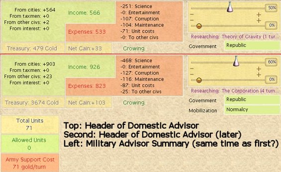Sorry if this has been covered before. I'm trying to figure out all the details of the columns on the domestic advisor screen (I attached a snippet from the latest screenshots for reference). Here's what I think I know, and what I'm not sure about.