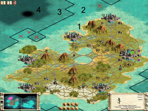 I edited this picture so it's easier to see the borderline and different levels of deepness in water. Everyone can see this light blue level next to the land, but then I draw blue lines to next deeper level and red lines to next deeper after that. The borderline is drawn to these blueline sea squares, but not to the red ones.