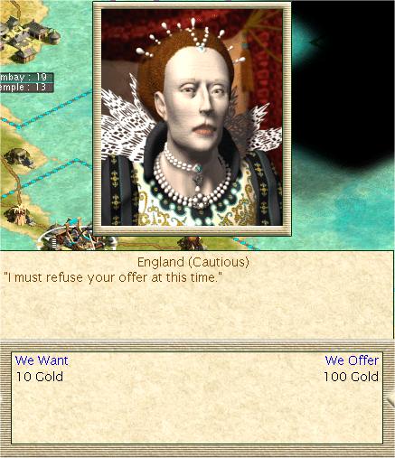 Having 121 gold in treasury I contact Elizabeth to change 100 of my gold against 10 gold just to see how sterling pounds look like