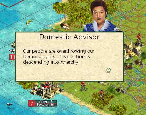 It's 1774, and having toured my empire mid turn, and having numerous cities in WLTPD, imagine my suprise with my domestic pimp telling me my citizens are overthrowing my democracy despite a 70% approval rate...what in the FUĊK is going on?