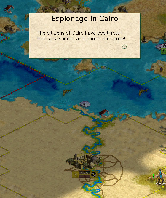 I commented in another thread that I had flipped a capitol with the initiate propaganda espionage mission and I don’t think most of the people who read the post thought I was full of it. So having a big cultural lead over Egypt (and a healthy supply of gold) when I got the IA, I decided to try again. Take a look…