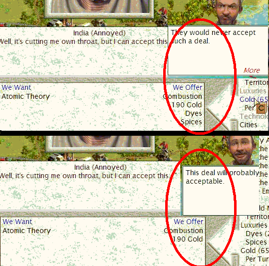 I was trying to exchange with the Indians the Atomic Theory , they ask me for it 190g and combustion... As you see in the picture, at the bottom of it, they were glad with that exchange...
