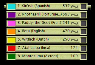 He didn't get Africa. That's mine (though I'm currently regretting it a bit). I also took Cuba, the Dominican Republic and Panama. Now if only I could get rid of the barbarian hordes that have seemed to crop up around all my settlements...oh and the barbarians with the white color too.