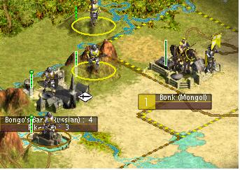 This might go on for awhile, although the Mongol's two AC armies can, with the impending help of bombardment from the mountain position shown, likely take down 3 pikes per turn, with a period of rest between turns. That seige will ultimately be enough to wear down the Russian numbers.