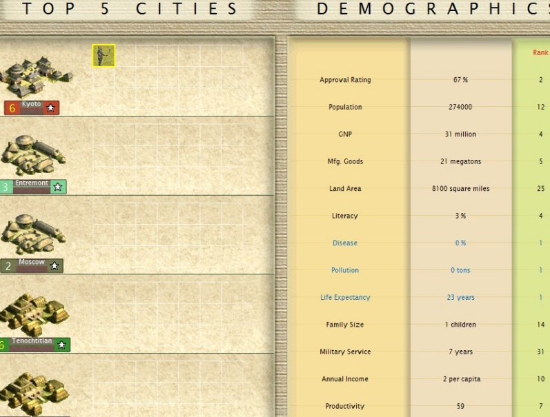 Notes: I went 23 turns because I’m an egotistical b@stard and wanted three cities named after me