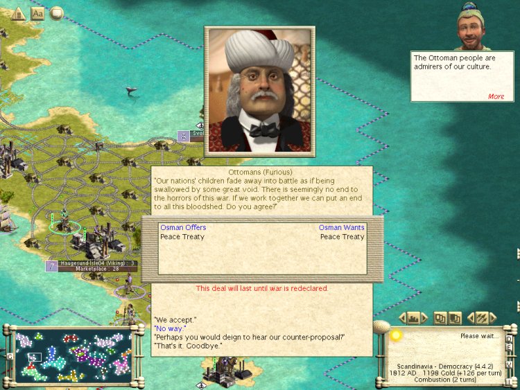 A general note. Now that we are a Democracy, War Weariness might get bad. We can't afford long wars anymore. For that matter, we can't afford many short ones either. Especially when we declare war.
