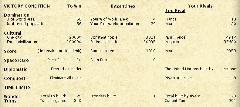 1505 AD (turn 291)- Check diplo status. Ouch. If we don't get Theory of Evolution, we're toast.