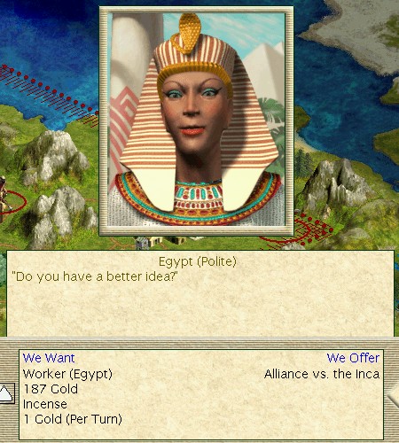 Queen Isabela agrees to trade their Literature and 91 gold for our Code of Laws!
