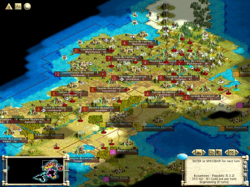 AD 340: Troop from San Fran minimally damaged, heads towards first Incan ex-Egyptian city (Memphis). Reinforcements are on the way as well, either to defend SF from attack or to attack Memphis, or who knows what else...
