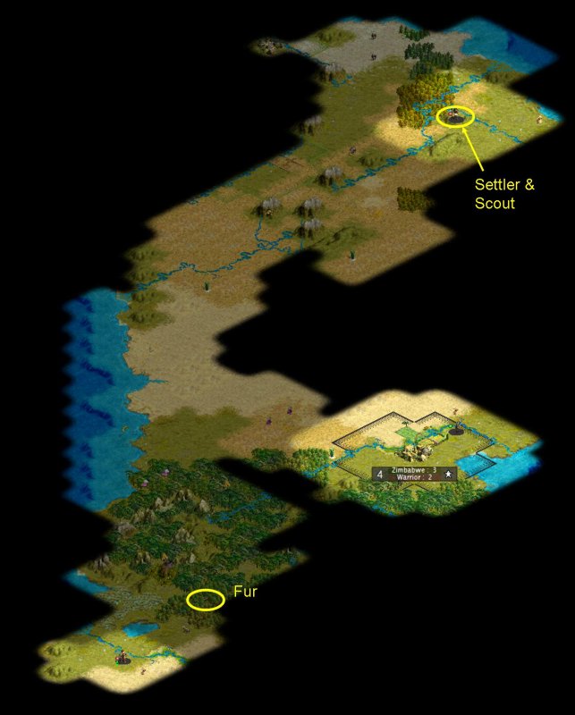 4 3300 Mongol explorer shows up at 4-4. 1 Warrior finds FUR!. 1 Scout finds IVORY by Mongols.