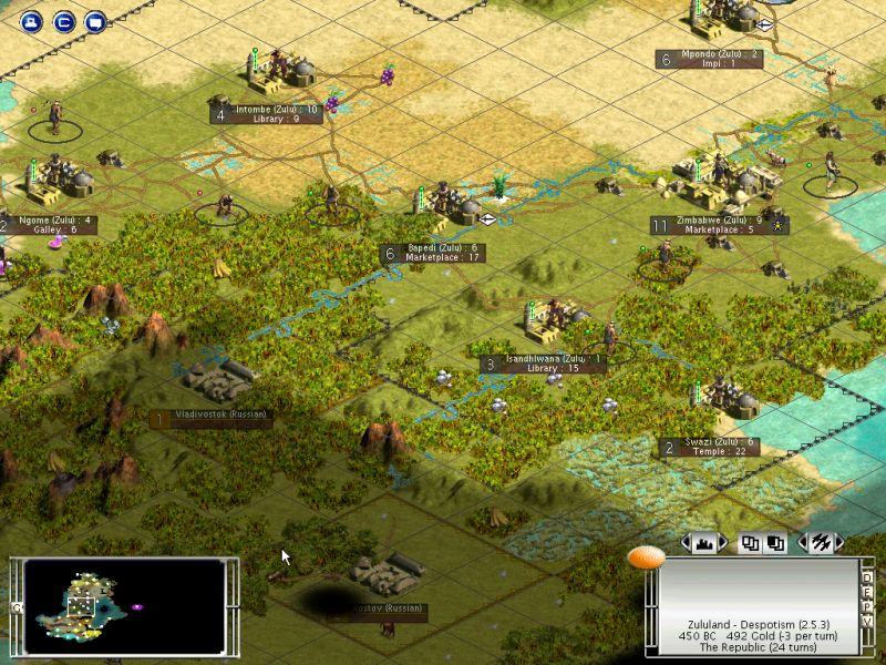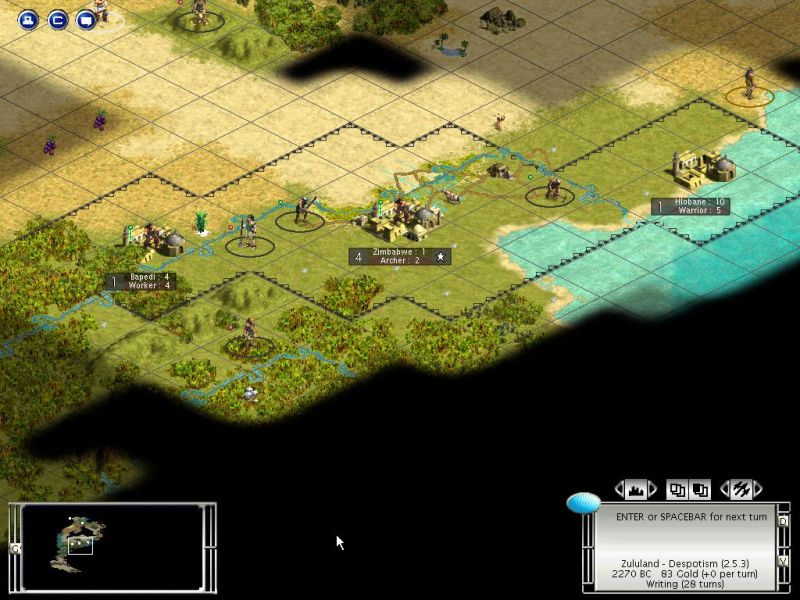 You can probably expect a demand in a bit, unless you get up a few archers. Bapedi could use the worker+slave to chop for a barracks and get out a couple. You can get you first one from Zim to hit the camps for promotion and gold.