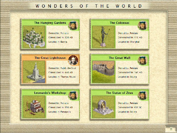 very puzzled about those wonders, many of them were in your cities paddy, and i didn't think mike had gotten to them.