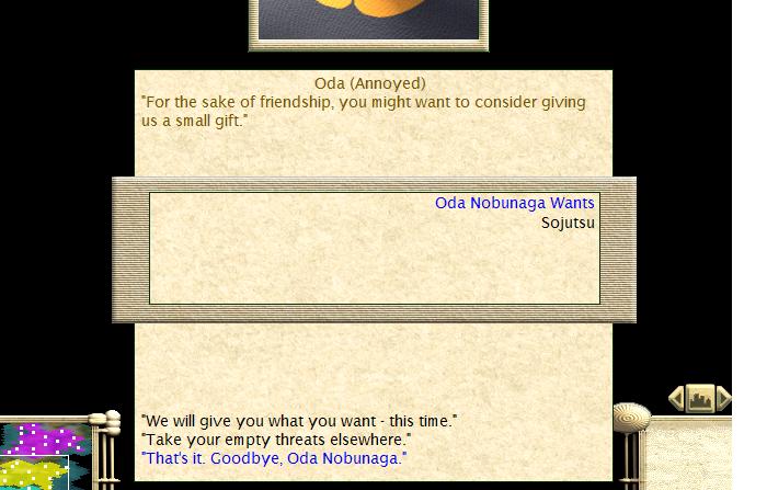 Oda declares war on Hojo when we reject their ridiculous demands!