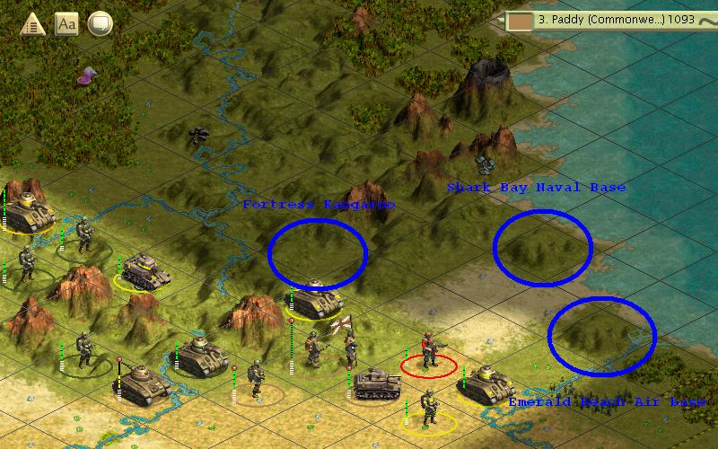 Fortress Kangaroo: this would be the main base for my forces in the area, it would contain the major rest and recreation areas, complete retooling facilities for both all Mechanized, Infantry and Aerial Forces. This base is set back to allow forces a full breather, yet keeping them close at hand.