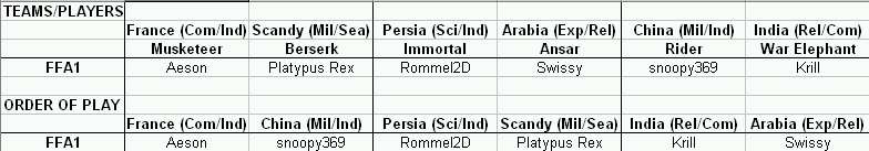 Since we have players from at least three distinctly different gaming backgrounds here, I don't expect common sense to be exactly mutual. One of the basic points of making up the Iron Civer Code (or any exploit list) is so that people used to playing by different standards can agree on some ground rules up front and refer back to them when disputes arise. If we don't agree to Iron Civer Warrior Code, I'd like to at least use something from CFC or Beta's thread as a definitive list.Originally posted by snoopy369