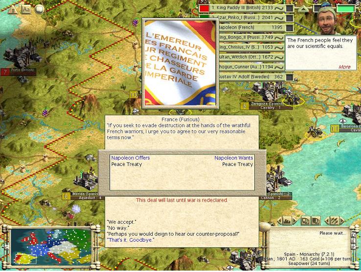 You may also want to know that I have been approached by french diplomats this turn. They wanted a peace treaty, I told them where to stuff it