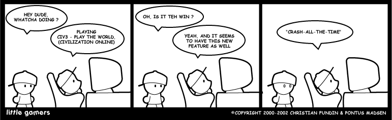 That was pretty dumb. But considering who the audience of the comic is, its not suprising. Take the purposely mispelled word(cause its "l33t") and helping his readers comprehend what PtW is by calling it "Civilization Online". Didn't go over our heads so much as it went far under us...