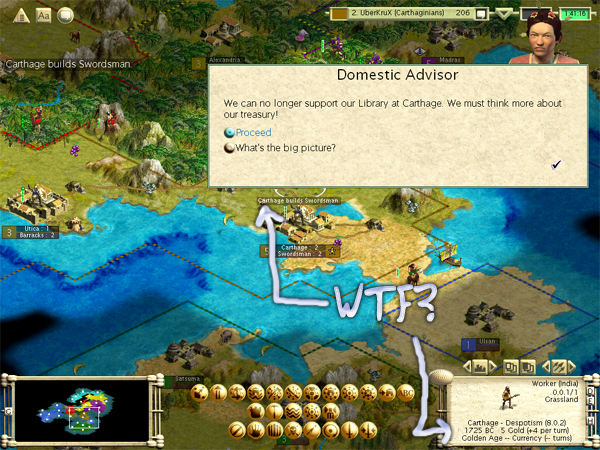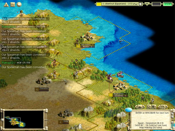 Another curiosity: at one point I clicked on a town to see what units were there and the list included, among other things, a "musketman". I thought I'd upgraded everyone to "mech infantry" (that's how far along I was in the game!). I clicked on "musketman" and the mech infantry icon appeared.